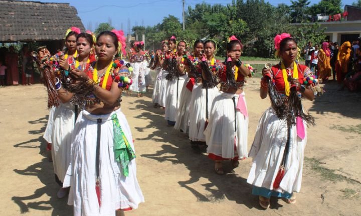 कञ्चनपुर – दशैँमा थारु समुदायका महिलाले देखाउने सखिया नृत्यको रौनकता हराउँदै जान थालेको छ । कृष्ण जन्माष्टमीका दिनदेखि सुरु गरिने नृत्य दशैँसम्म देखाउने चलन रहे पनि अहिले यस नृत्यलाई छाेट्याएर पाँचदेखि तीन दिन मात्रै देखाउन थालिएको छ । कोरोना महामारीका कारण सखिया नृत्यलाई छोट्याउनु परेको कञ्चनपुरको जोनापुरका वडघर रामप्रसाद चौधरीले बताउनुभयो ।’सखिया नृत्य सामूहिकरुपमा देखाइने भएकाले निकै भीडभाड हुन्छ’, उहाँले भन्नुभयो, ‘त्यसैले यस नृत्यलाई छोटो अवधिका लागि देखाउने व्यवस्था मिलाएका छौँ । ‘गाउँका धेरैजसो व्यक्ति व्यावसायिक कार्यमा संलग्न भएकाले पनि पहिला जस्तो सबैसँग फुर्सद नहुँदासमेत नृत्यको पहिला जस्तो महत्त्व नरहेको उहाँले बताउनुभयो ।
