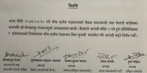 उहाँले भन्नुभयो, ‘पाँच दलीय गठबन्धन बैठकले मंसिर ४ गते हुने प्रतिनिधि सभा र प्रदेश सभाको चुनावमा पाँच दलीय गठबन्धनबीच चुनावी तालमेल गरी अघि बढने निर्णय गर्यो । चुनावी तालमेलको निम्ति फेरि बैठक बस्छ, छलफल गर्छ।’