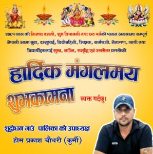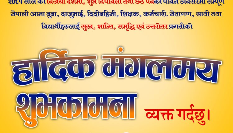 २०८१ सालको विजय दशमी शुभ दिपावली तथा छठ पर्बको शुभ कानमा Uncategorized ✍️ बुद्धभूमि संवाददाता पछिल्लो पटक अपडेट Mar 29, 2025 0 बाड्नुहोस् 0 बाड्नुहोस् FacebookTwitterGoogle+ReddItWhatsAppPinterestEmail