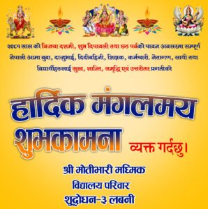 २०८१ सालको विजय दशमी शुभ दिपावली तथा छठ पर्बको शुभ कानमा Uncategorized ✍️ बुद्धभूमि संवाददाता प्रकाशित मिति २४ आश्विन २०८१, बिहीबार १६:१६ 0 बाड्नुहोस् 0 बाड्नुहोस् FacebookTwitterGoogle+ReddItWhatsAppPinterestEmail